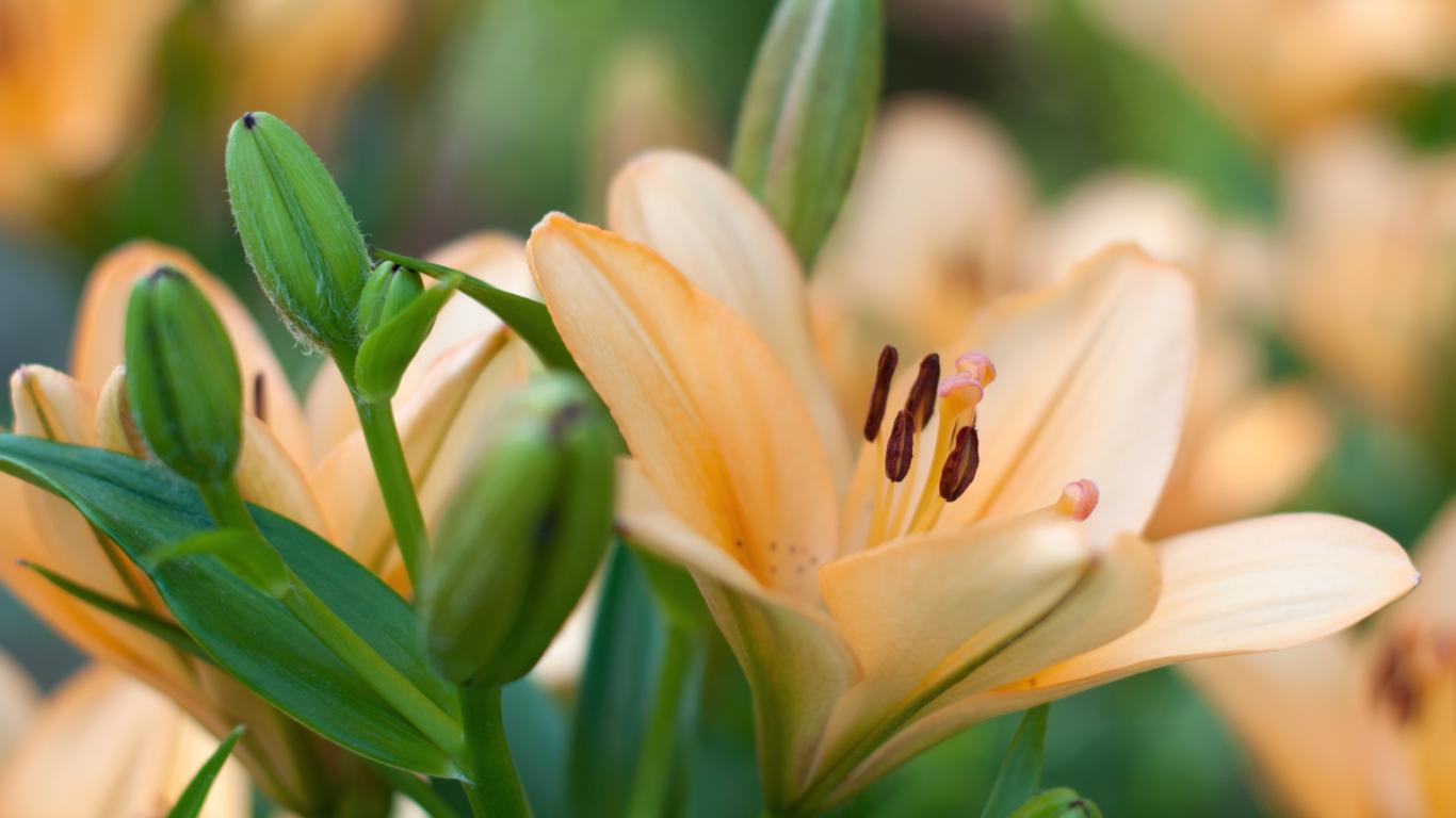 Wallpaper Delicate lilies with buds close-up