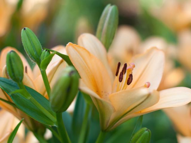 Wallpaper Delicate lilies with buds close-up