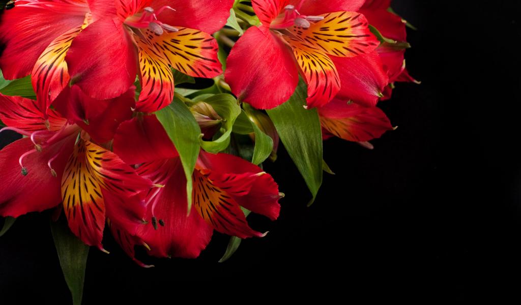Wallpaper Red Alstroemeria flowers close-up on a black background