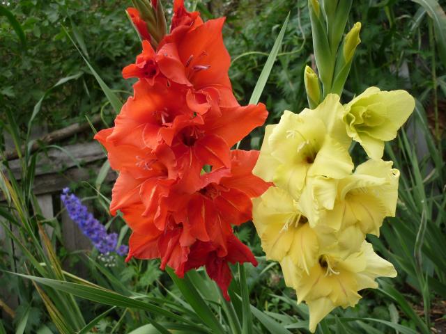 Wallpaper Multicolored summer flowers gladioli closeup
