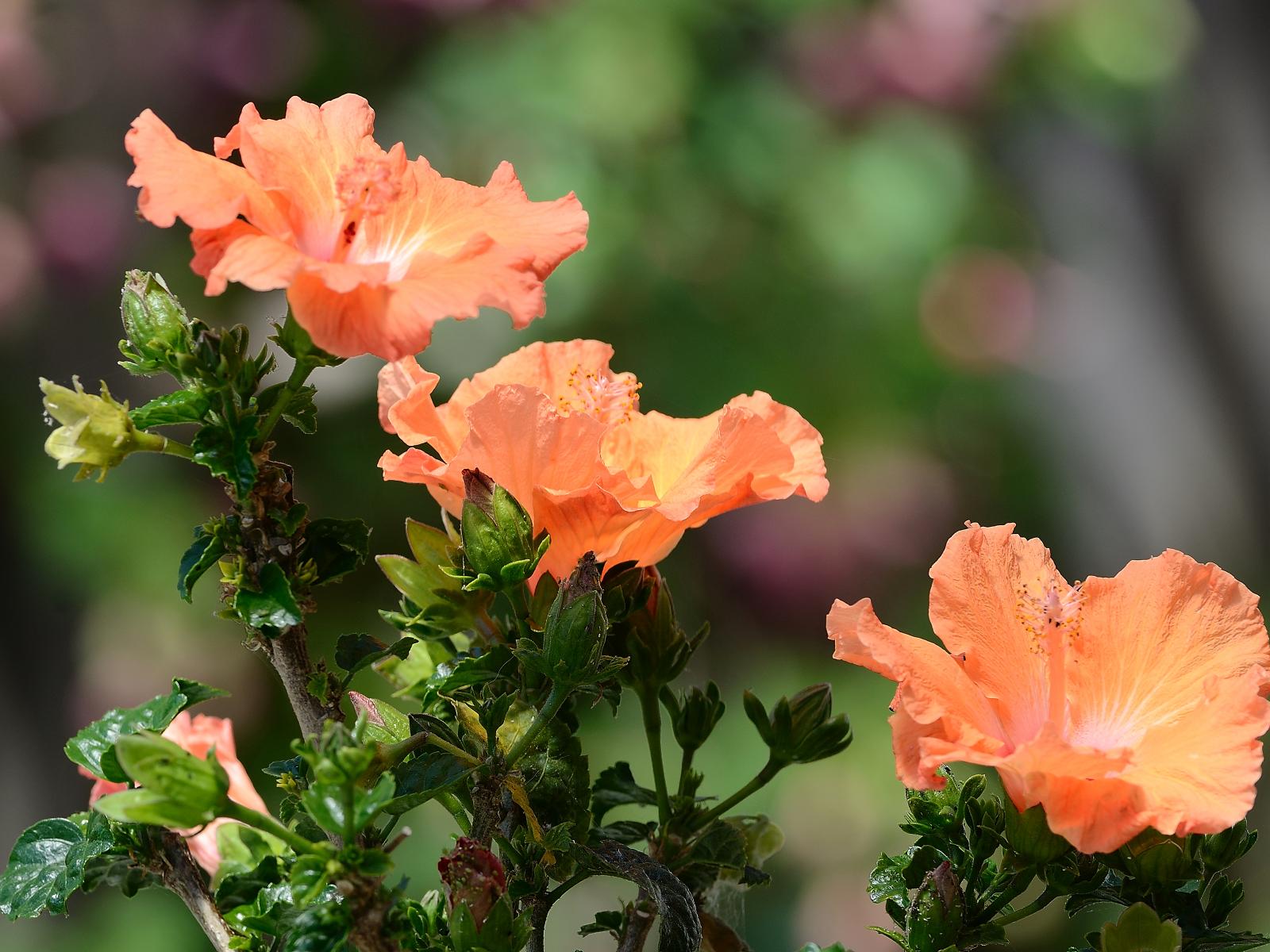 Wallpaper Three beautiful orange hibiscus flowers