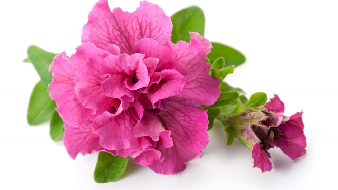Wallpaper Pink petunia flower close-up on a white background