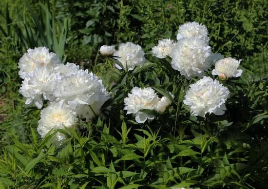 Wallpaper Beautiful soft white peonies on the flowerbed