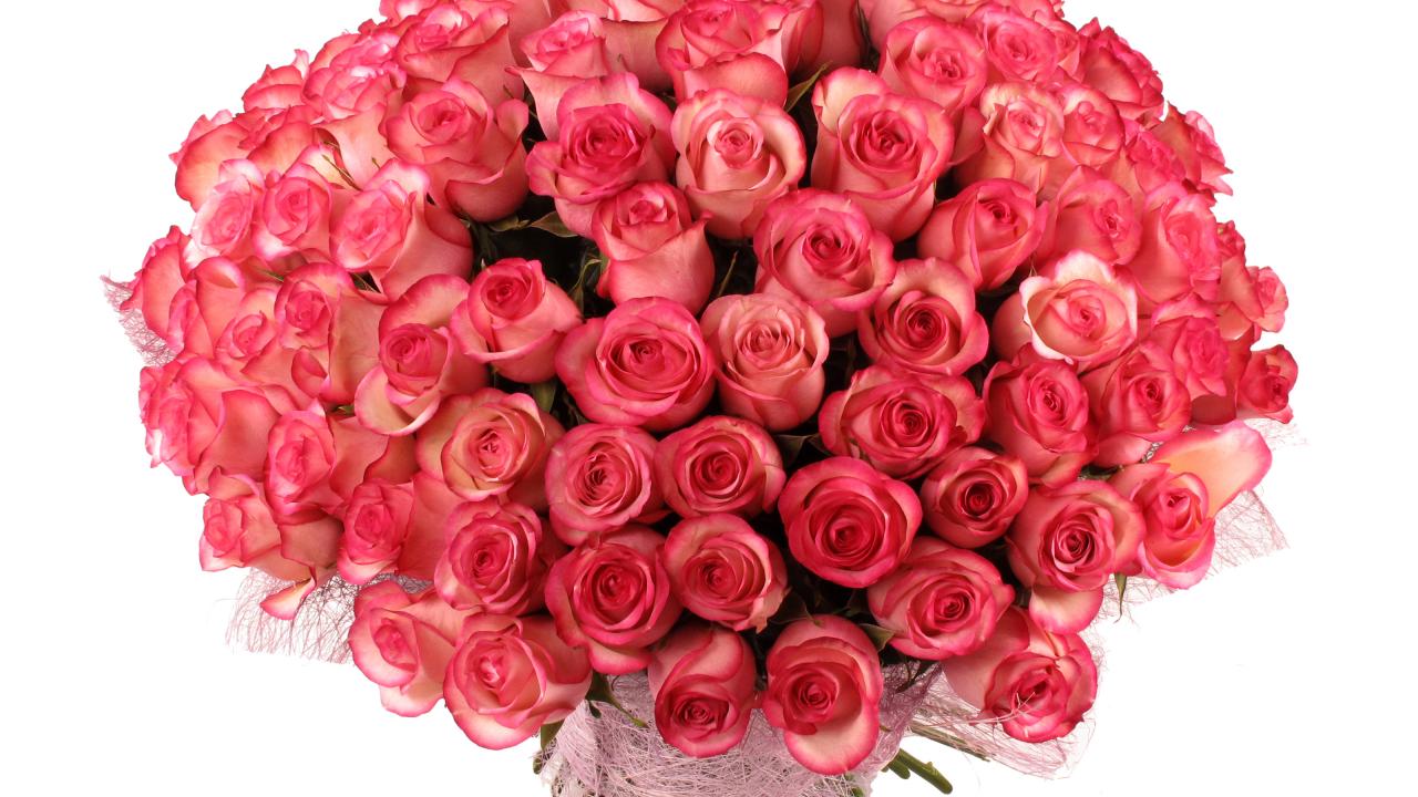» Wallpaper Large bouquet of delicate pink roses on a white background