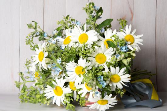 Wallpaper Bouquet of field chamomiles bandaged with ribbon