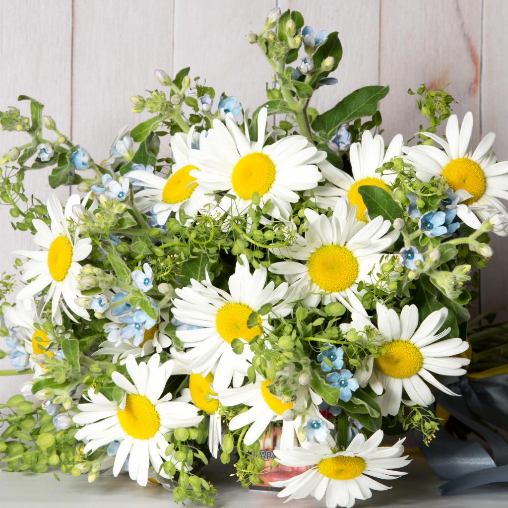 Wallpaper Bouquet of field chamomiles bandaged with ribbon