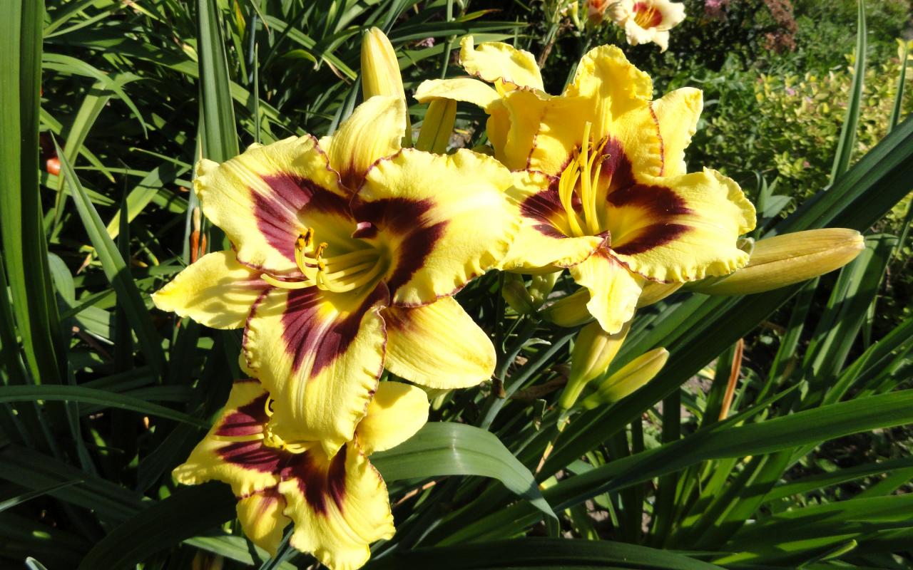 Wallpaper Yellow lilies with buds on the flowerbed