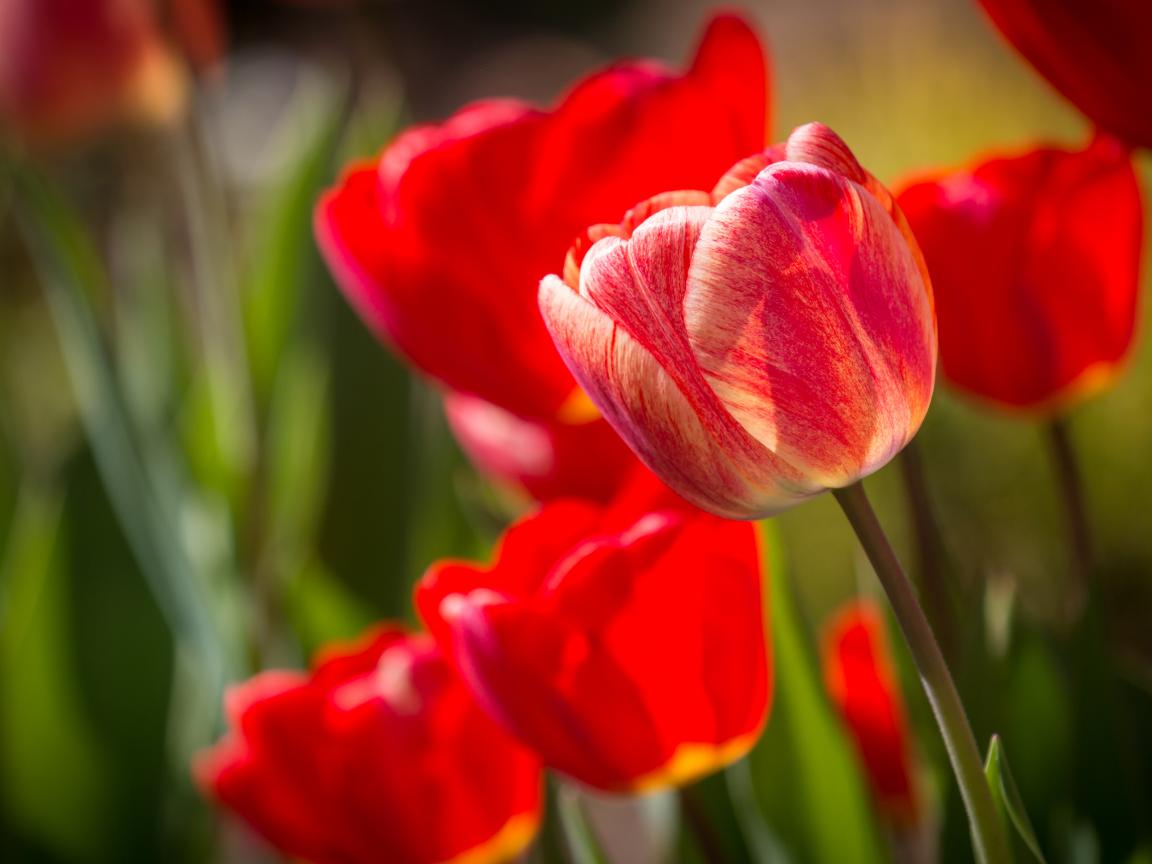 Wallpaper Beautiful bouquet of multi-colored tulips close-up