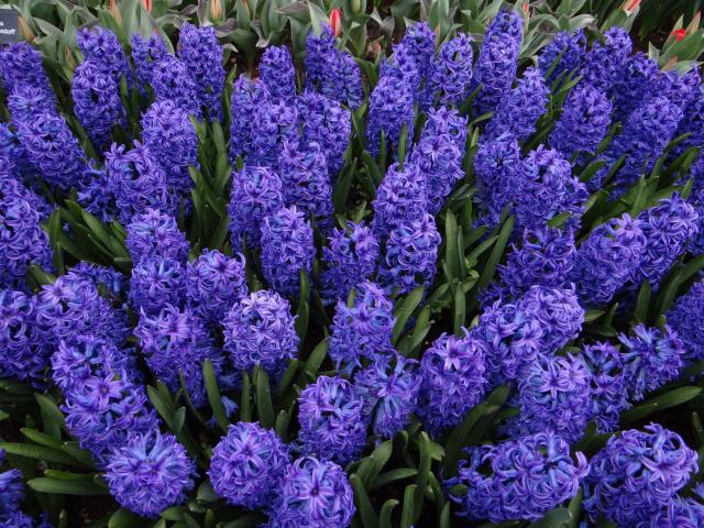 Wallpaper Blue flowers hyacinths on a flower bed closeup