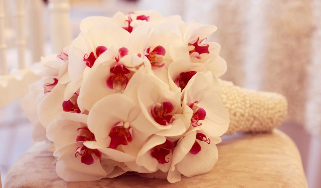 Wallpaper Bouquet of white roses and white orchids on a white background