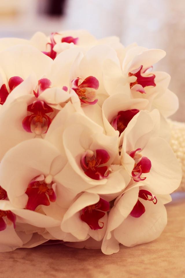 Wallpaper Bouquet of white roses and white orchids on a white background