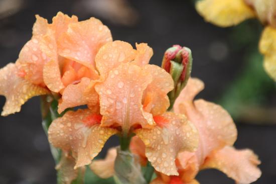 Wallpaper Orange irises in drops of dew close up