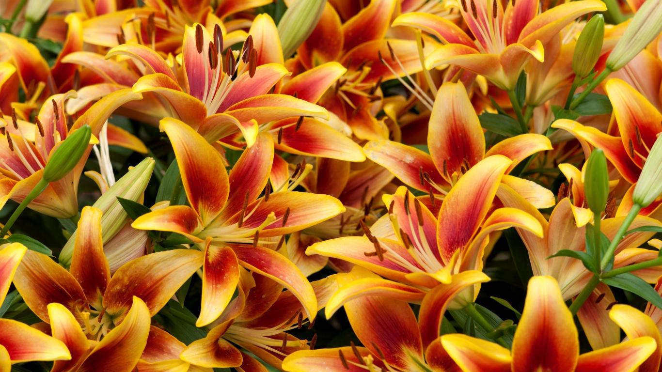 Wallpaper Many beautiful orange lilies in the sun