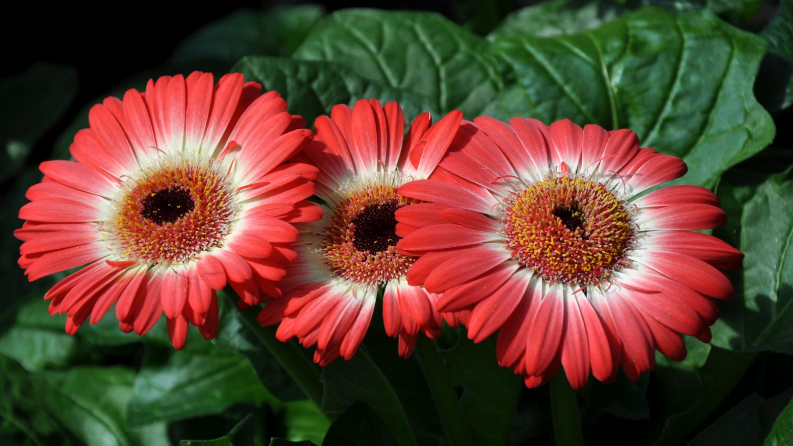 Wallpaper Three beautiful red gerberas close-up