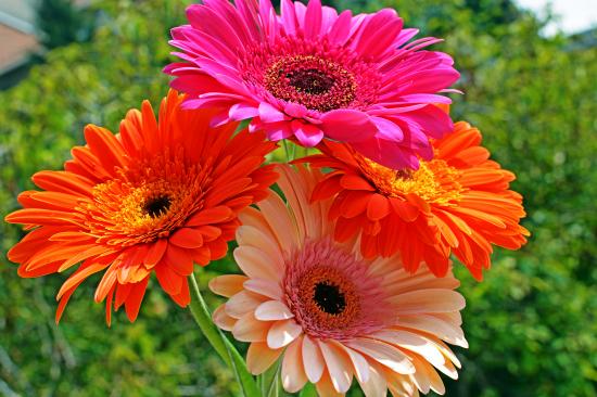 » Wallpaper Four multicolored gerberas close-up