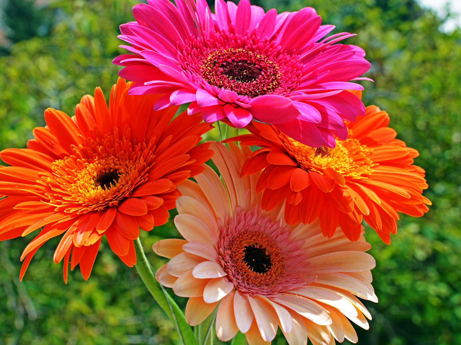 » Wallpaper Four multicolored gerberas close-up