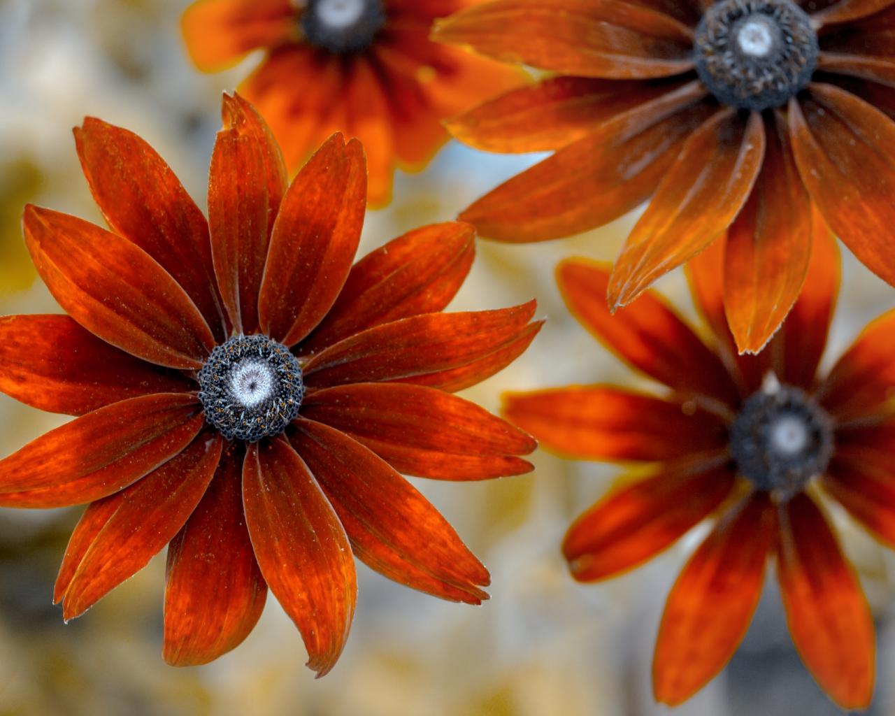 Wallpaper A bush of red flowers of echinacea on the flowerbed