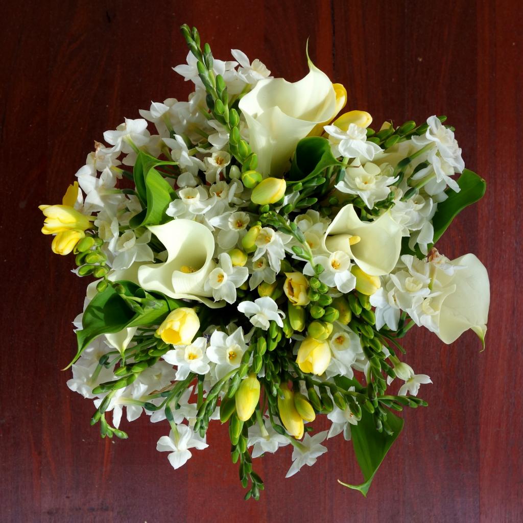 Wallpaper Delicate white daffodils and callas in a beautiful bouquet