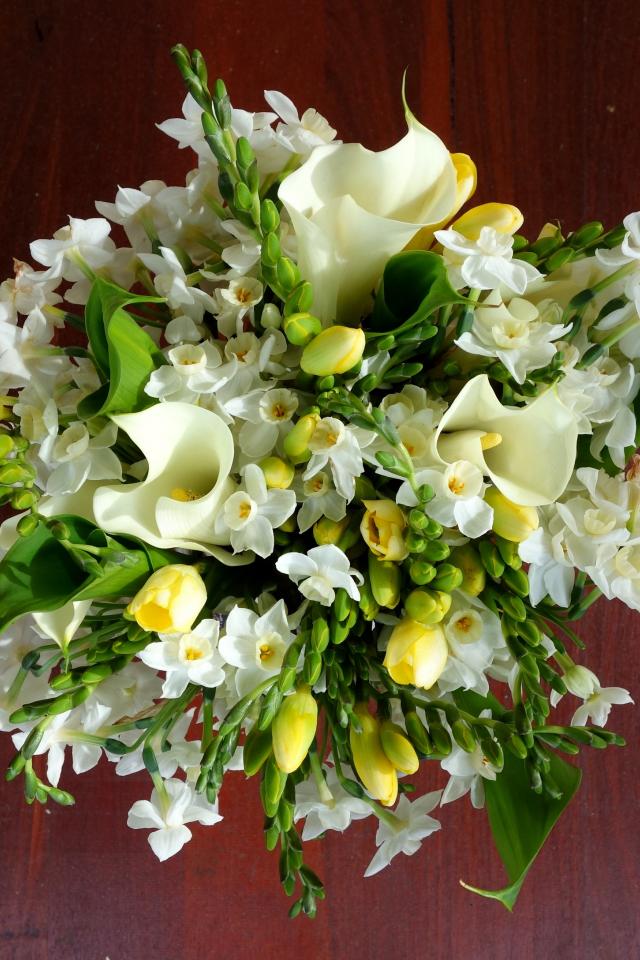 Wallpaper Delicate white daffodils and callas in a beautiful bouquet