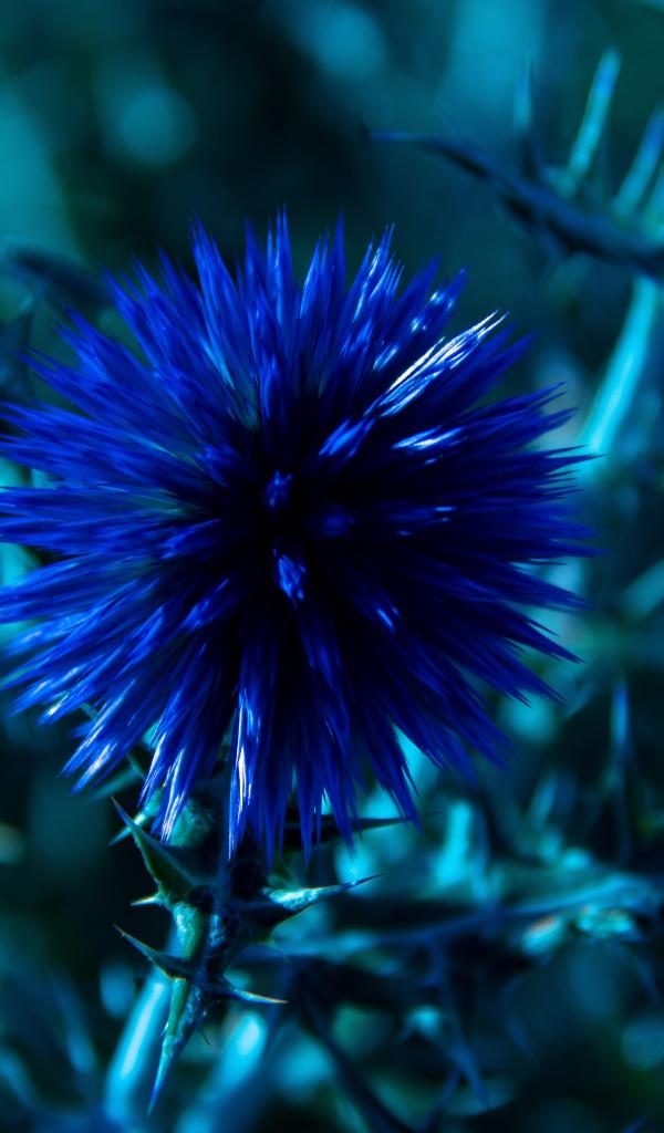 Wallpaper View of the field with blue flowers under a beautiful blue sky with white clouds