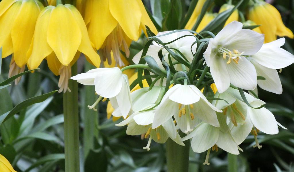 Wallpaper Yellow and white flowers of hazel groves in the garden