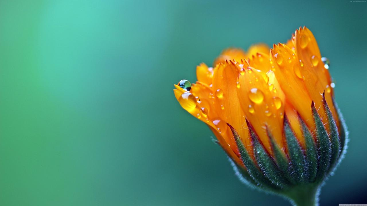 Wallpaper Unexpected orange flower of calendula in drops of dew