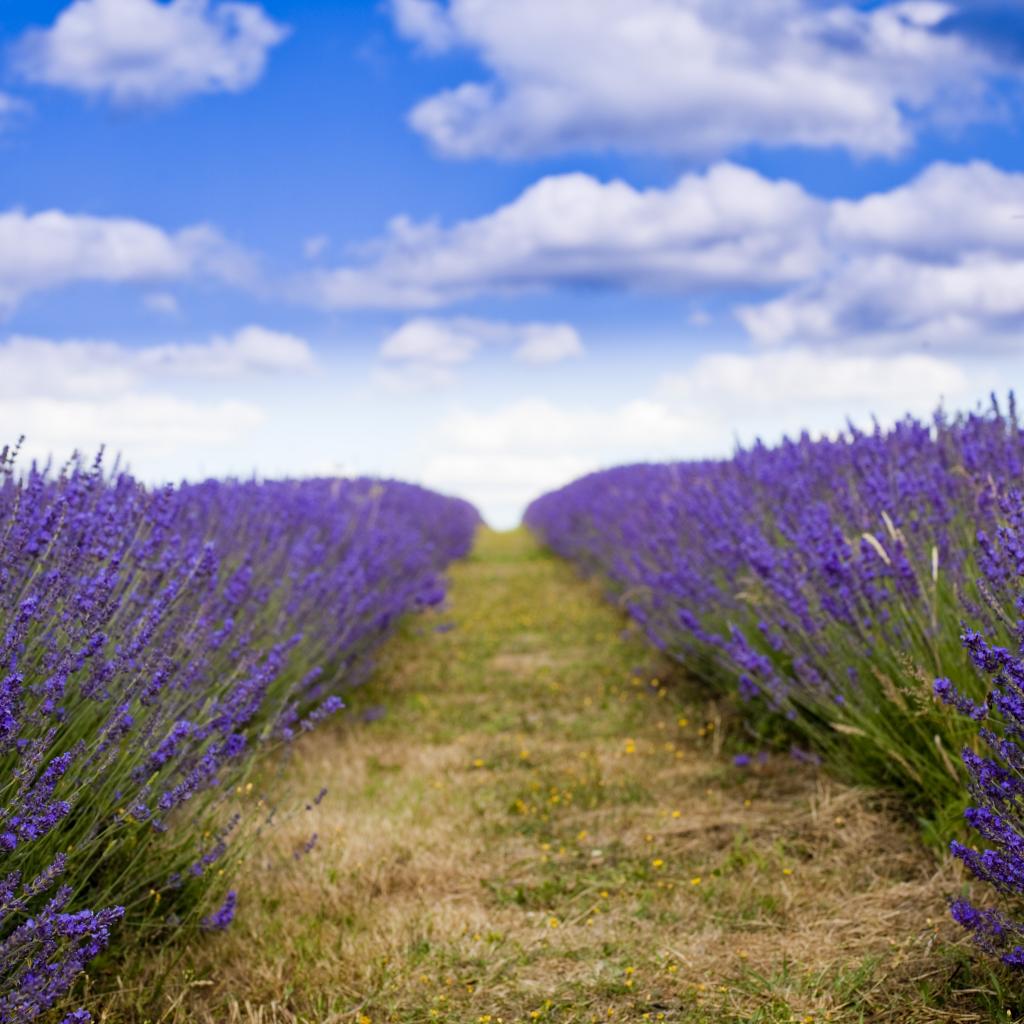 Wallpaper A field of purple lavender flowers under a blue sky