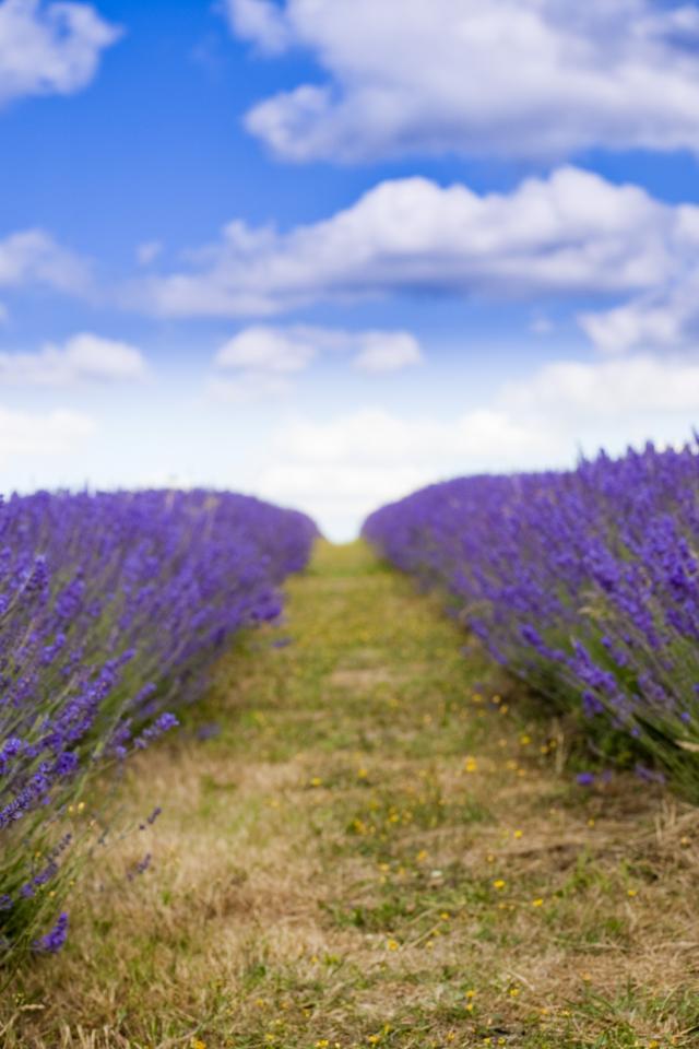Wallpaper A field of purple lavender flowers under a blue sky