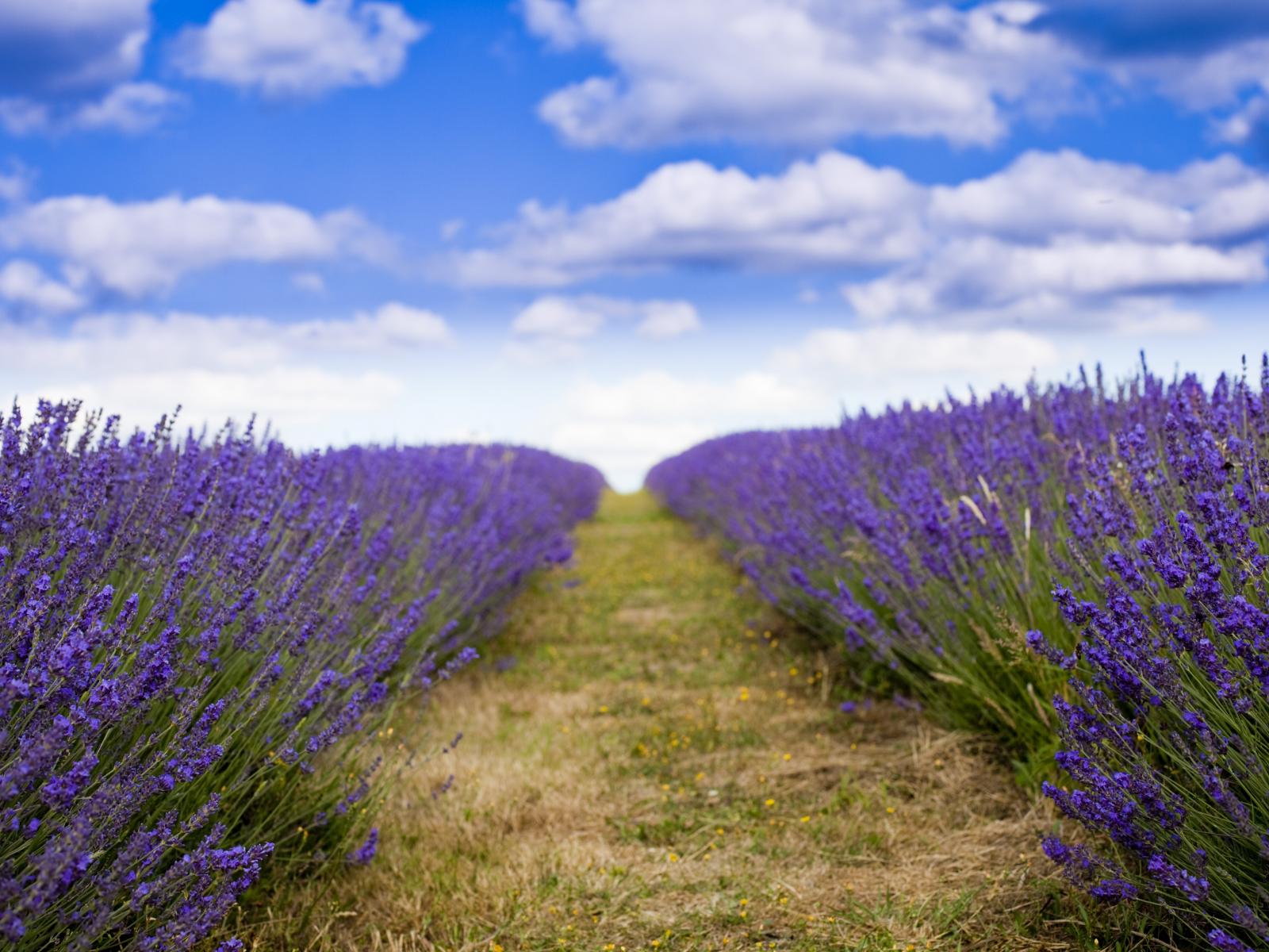 Wallpaper A field of purple lavender flowers under a blue sky