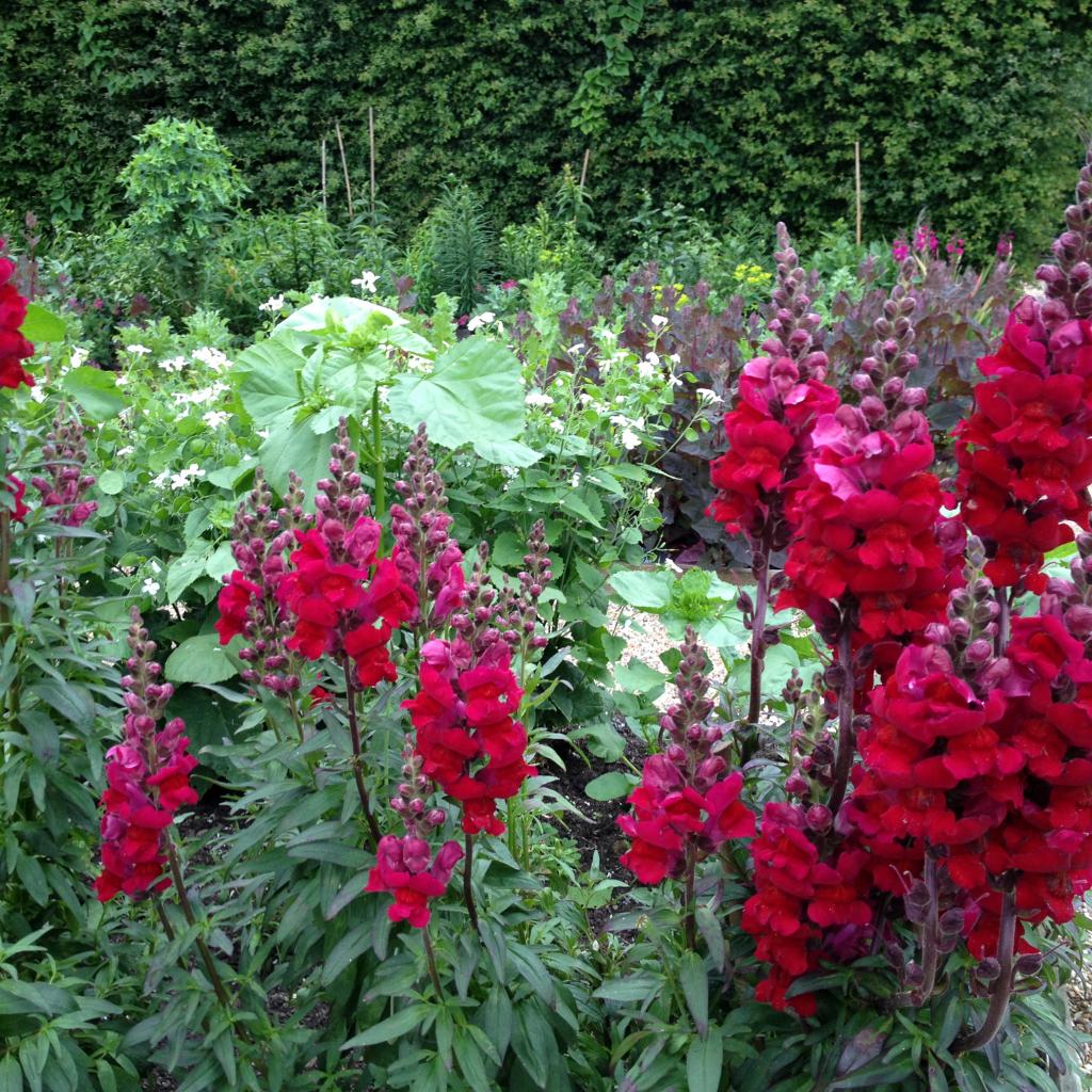 Wallpaper Beautiful burgundy flowers of a snapdragon on a flower bed