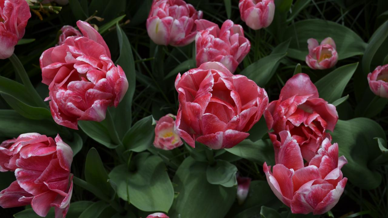 Wallpaper Beautiful red and pink tulips on a flower bed