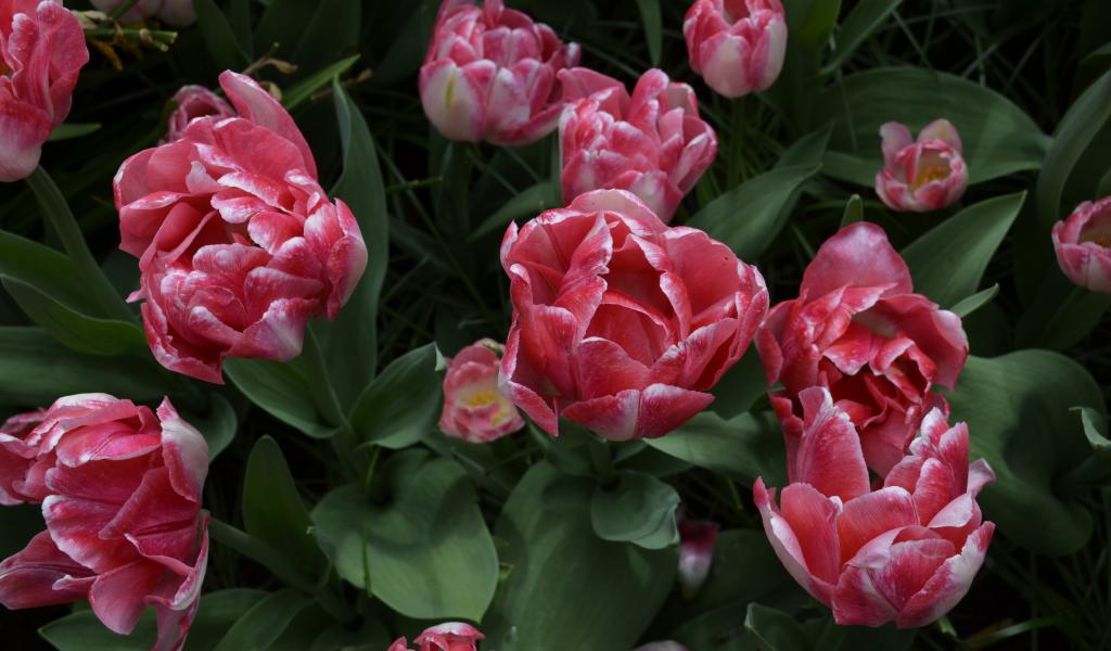 Wallpaper Beautiful red and pink tulips on a flower bed