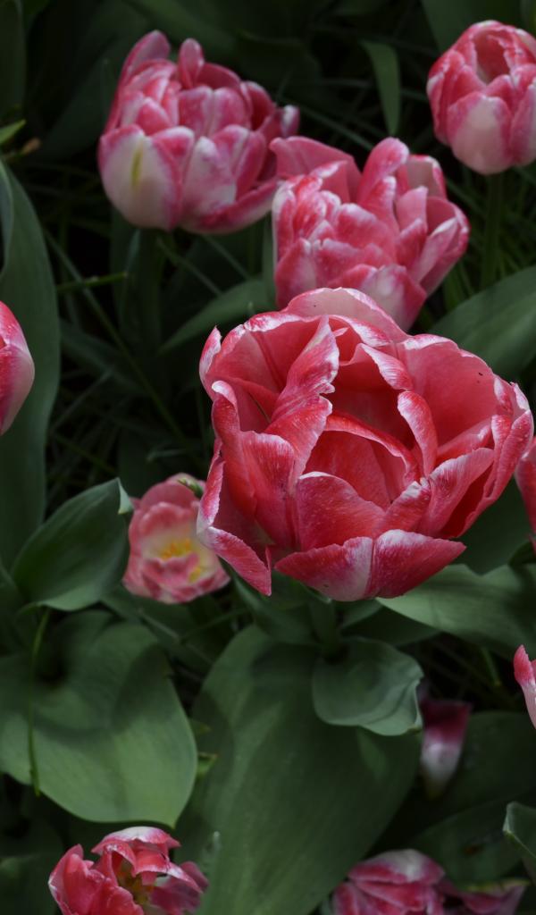 Wallpaper Beautiful red and pink tulips on a flower bed