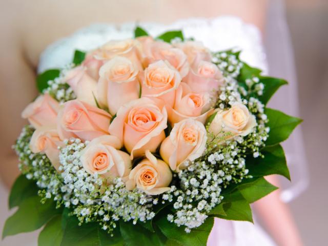 Wallpaper Gentle bouquet of the bride with roses in cream color