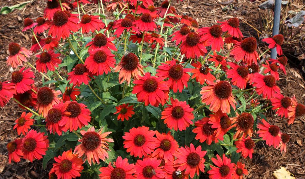 Wallpaper A bush of red flowers of echinacea on the flowerbed
