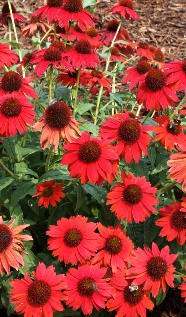 Wallpaper A bush of red flowers of echinacea on the flowerbed