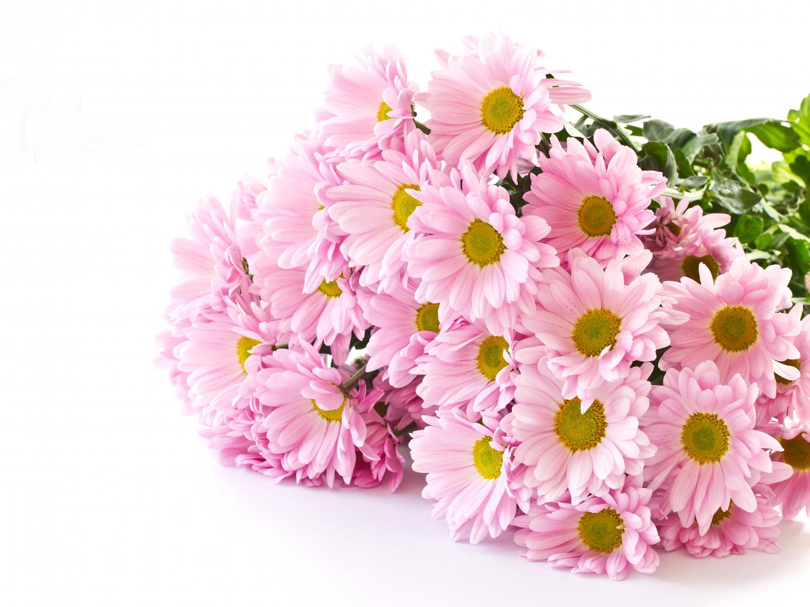 Wallpaper Bouquet of pink chrysanthemums on a white background