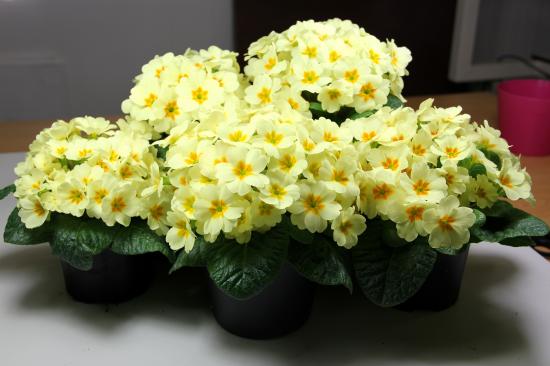 Wallpaper Yellow house flowers of primrose in pots