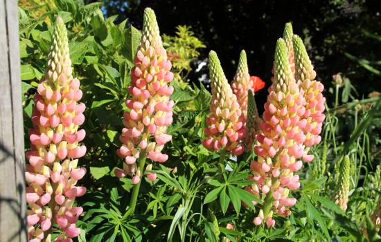 Wallpaper Beautiful pink lupines on a flower bed