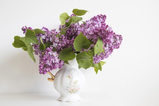Wallpaper Bouquet of lilacs in a beautiful vase on a white background