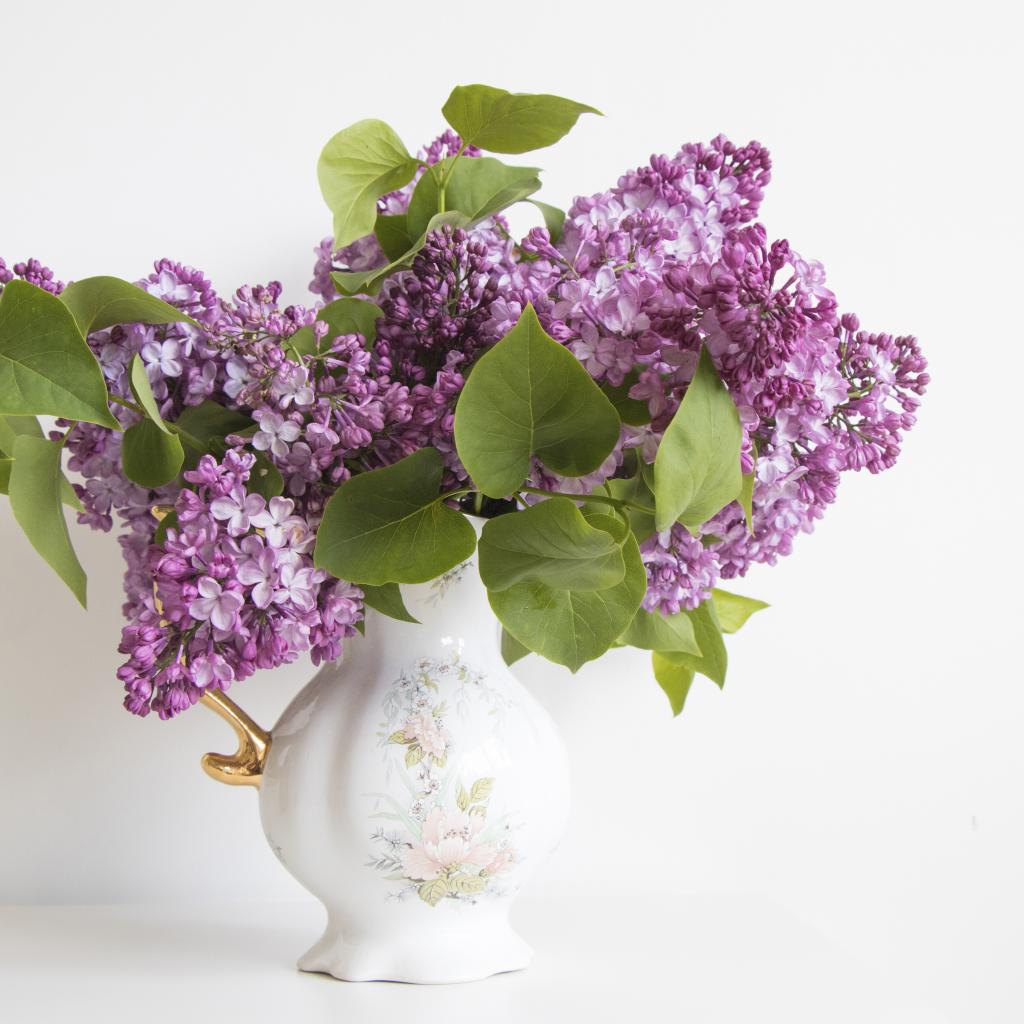 Wallpaper Bouquet of lilacs in a beautiful vase on a white background