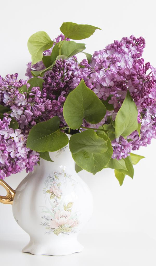 Wallpaper Bouquet of lilacs in a beautiful vase on a white background
