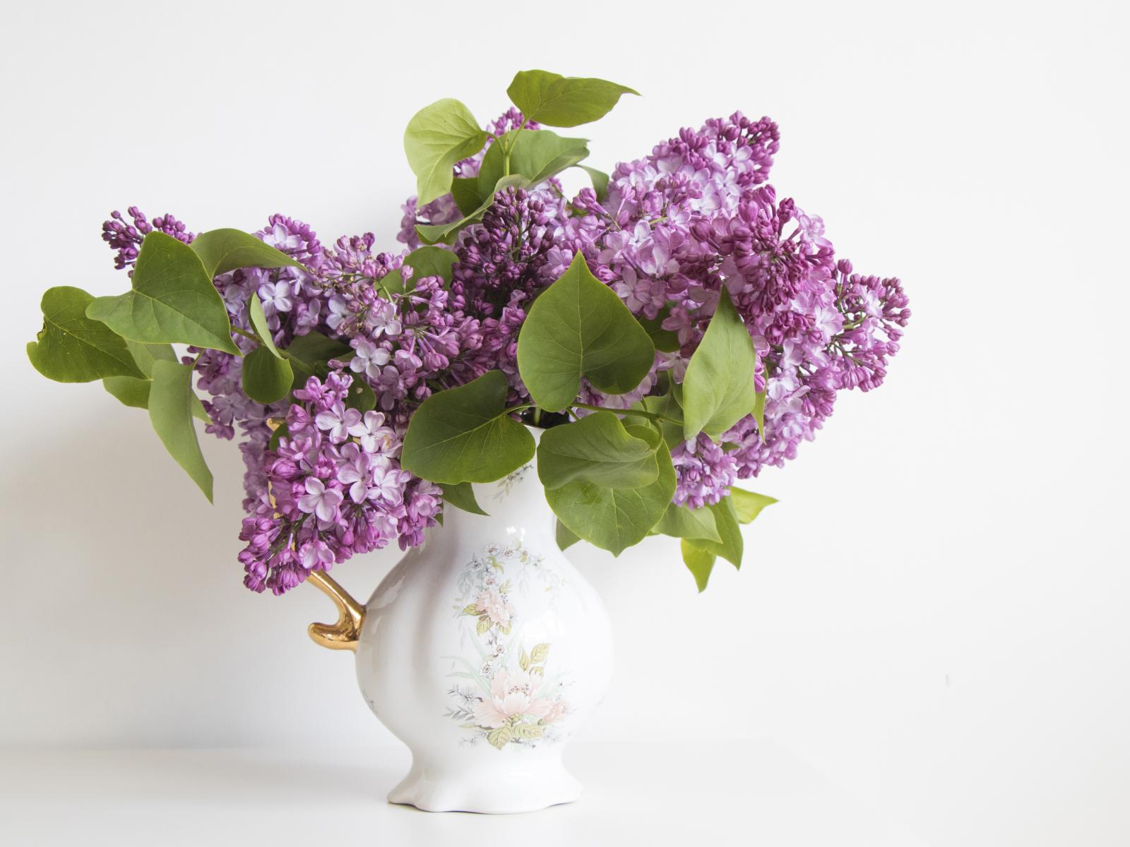 Wallpaper Bouquet of lilacs in a beautiful vase on a white background
