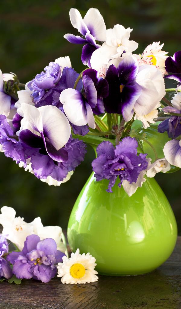 Wallpaper A bouquet of delicate pansy flowers and violets in a vase
