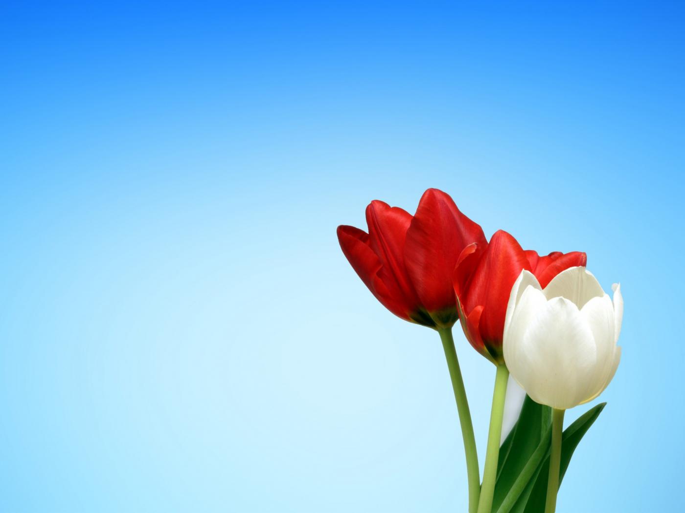 Wallpaper Two red and white tulips on a blue background