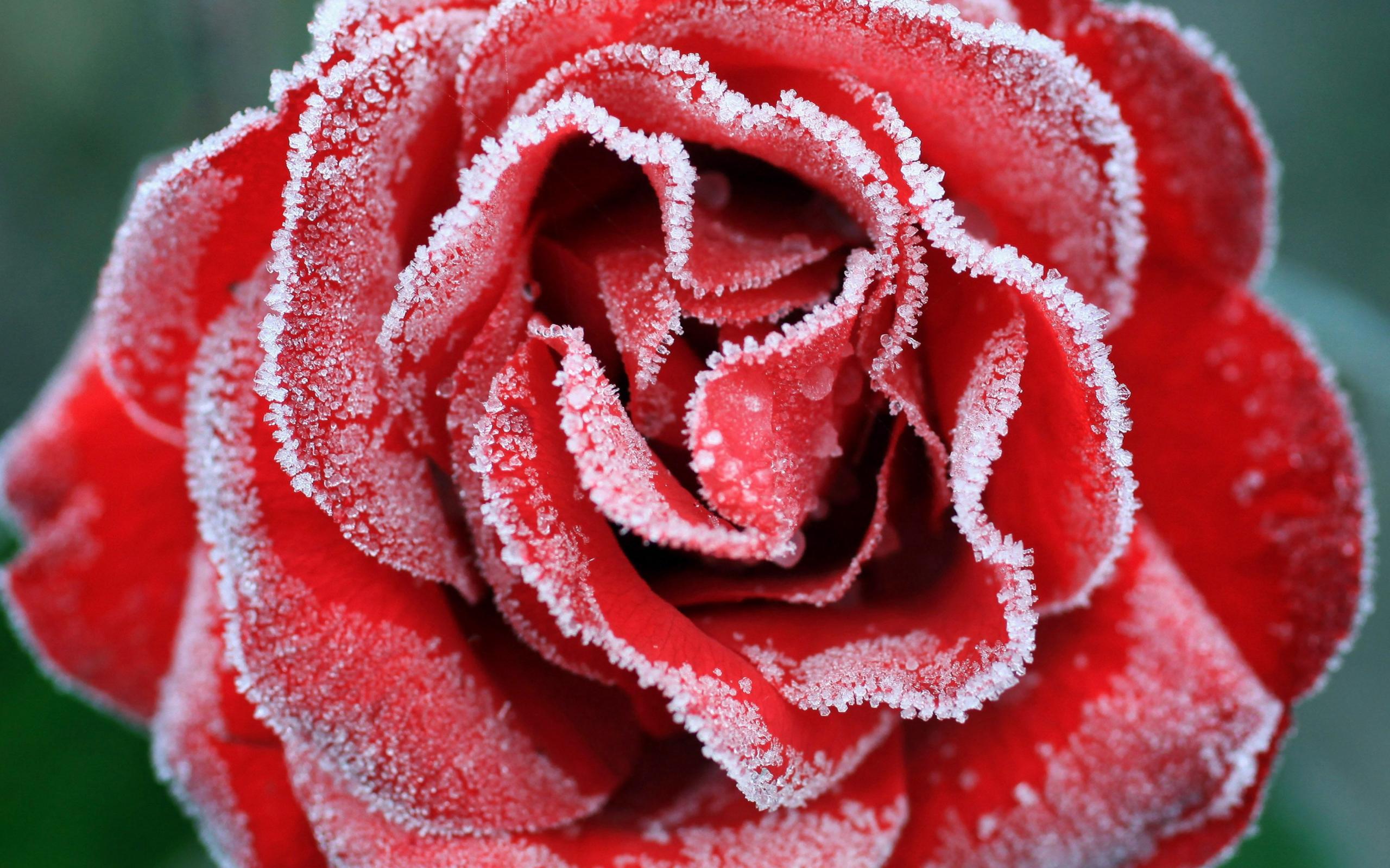 Wallpaper A large red rose is covered with hoarfrost