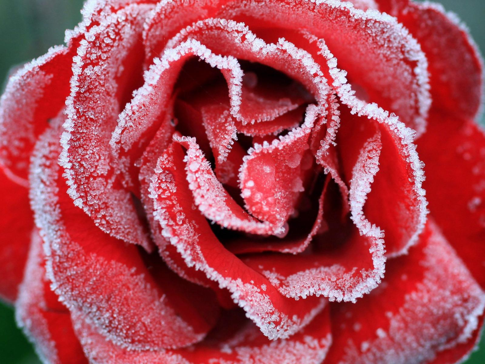 Wallpaper A large red rose is covered with hoarfrost