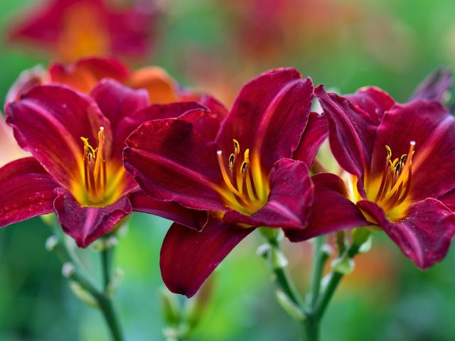 Wallpaper Three red beautiful lily flowers