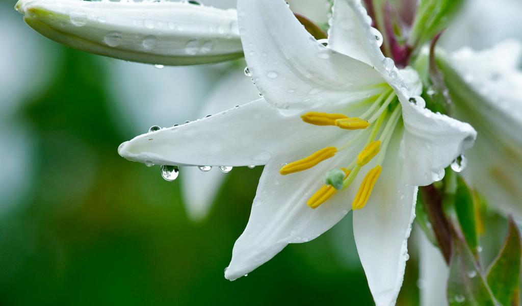 Wallpaper White lily with buds in drops of dew