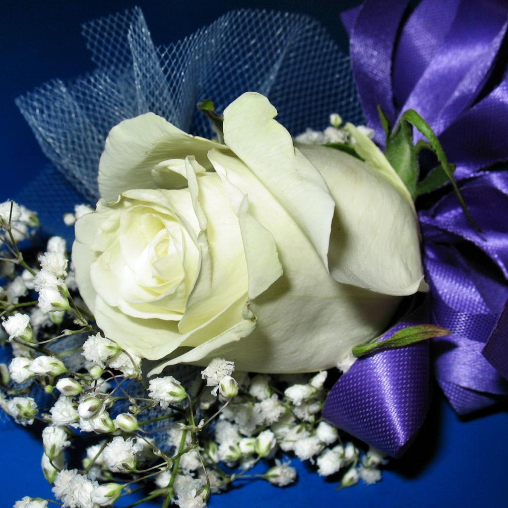 Wallpaper White rose with gypsophila bandaged with purple ribbon